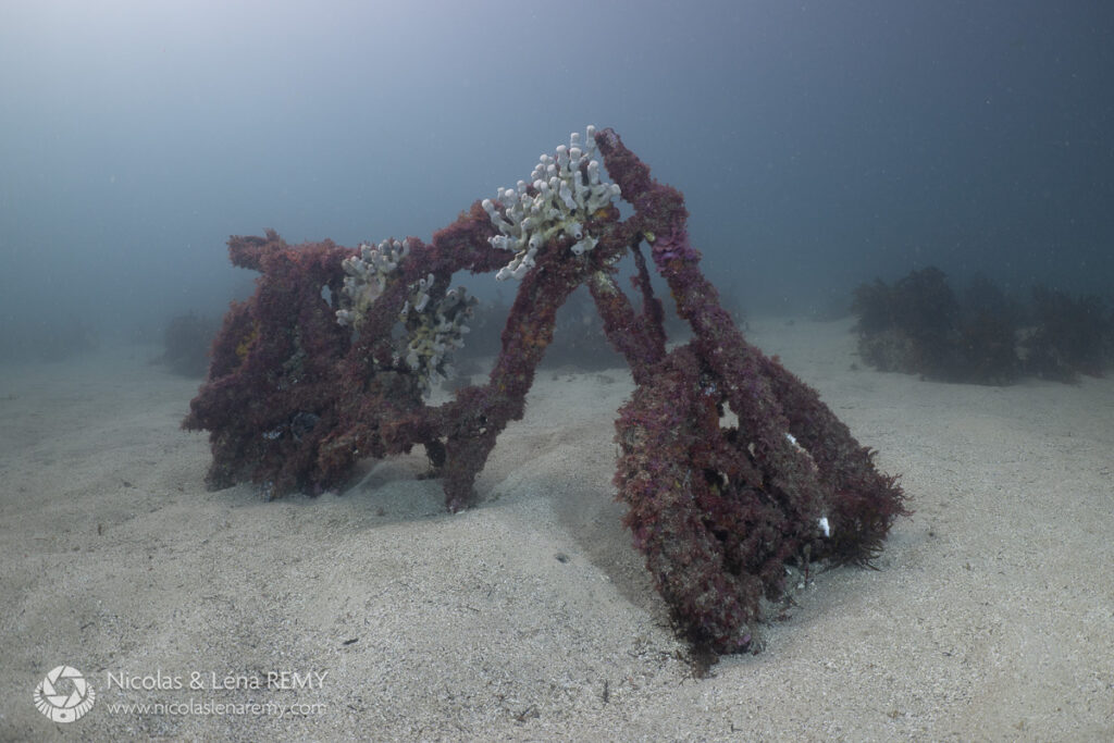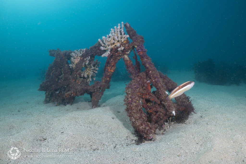 Someone parked their bike in the wrong place (in the middle of Cabbage Tree Bay, north of Sydney), but it proved useful as a visual reference for some comparative diffusers tests. This was in 25 feet of water on a pretty clear day, the visibility was 6-7 meters (20–25 feet), and the water tint was a rather dull, unsaturated blue (still better than green!). Let’s see how different diffusers fared in terms of tweaking the water backgrounds.