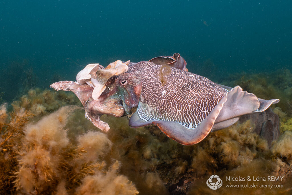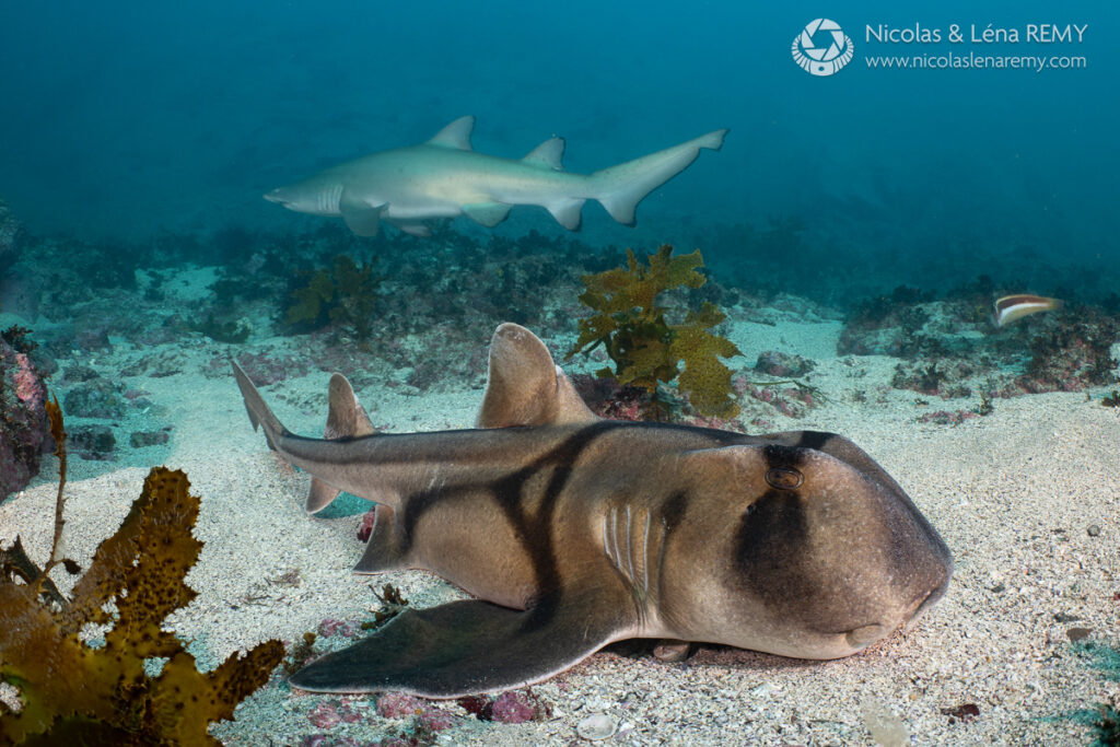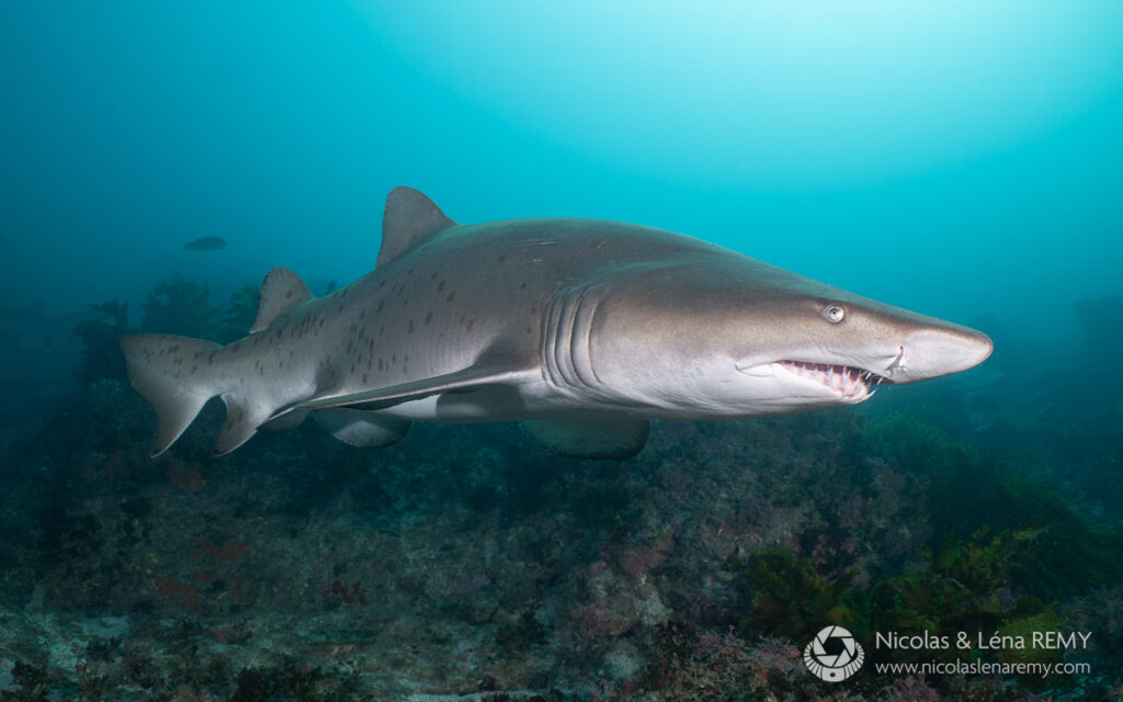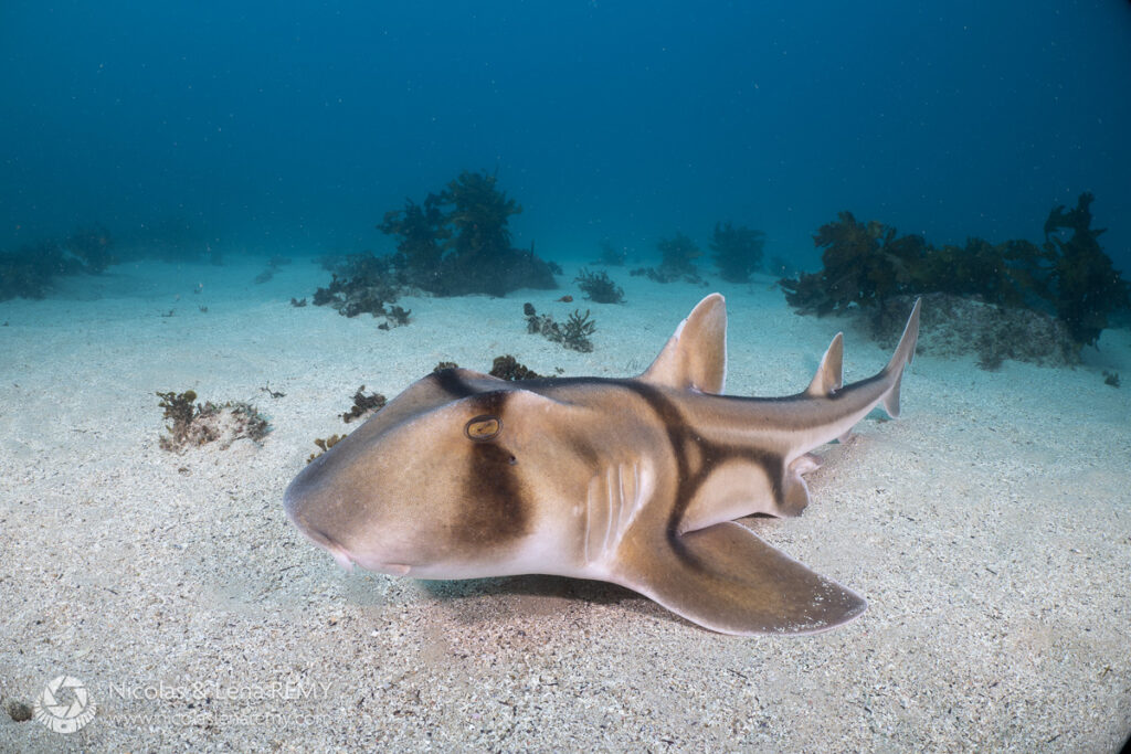 The ambient blue diffusers produce a desaturated, cold color palette and although I like the ethereal feel of the first Port Jackson shark photo, it will only suit a minority of subjects and scenes. For me, the main advantage of this diffuser is how effectively it blends artificial and ambient light together. You can’t see any color transition on the sand, whereas the second photo carries the expected cyan color in the remote sand patch beyond the strobes’ reach.