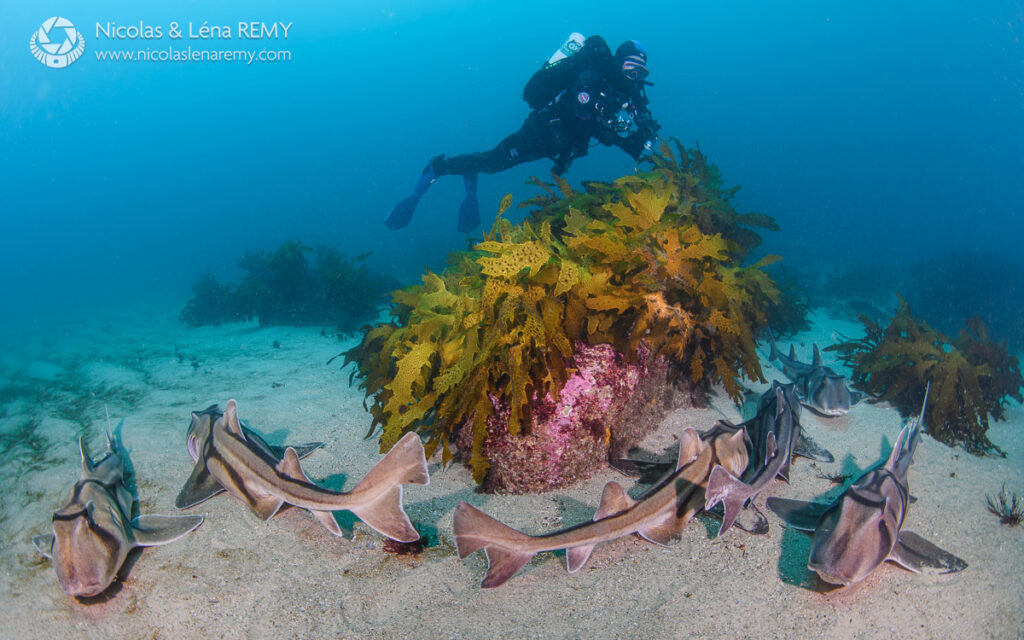 What about sharks? If you though that Raja Ampat’s 1.8m (6 ft) long tasselled wobbegongs were cool, check-out our gulf wobbegongs (orectolobus halei), which are relatively common and can be nearly 3 meters (10 ft) long, just don’t get too close. We also have 2 species of bull-head sharks whose groin give them a unique look: the port-jackson shark and crested-horn shark. Up next, our critically-endangered grey nurse shark can be seen most of the year on boat dives, it looks very similar to the sand tiger shark (US) and ragged-tooth shark (South Africa), but is a distinct population. This blog article would be too long if I covered every species I photographed in Sydney, consider it an appetizer, and come explore yourself!