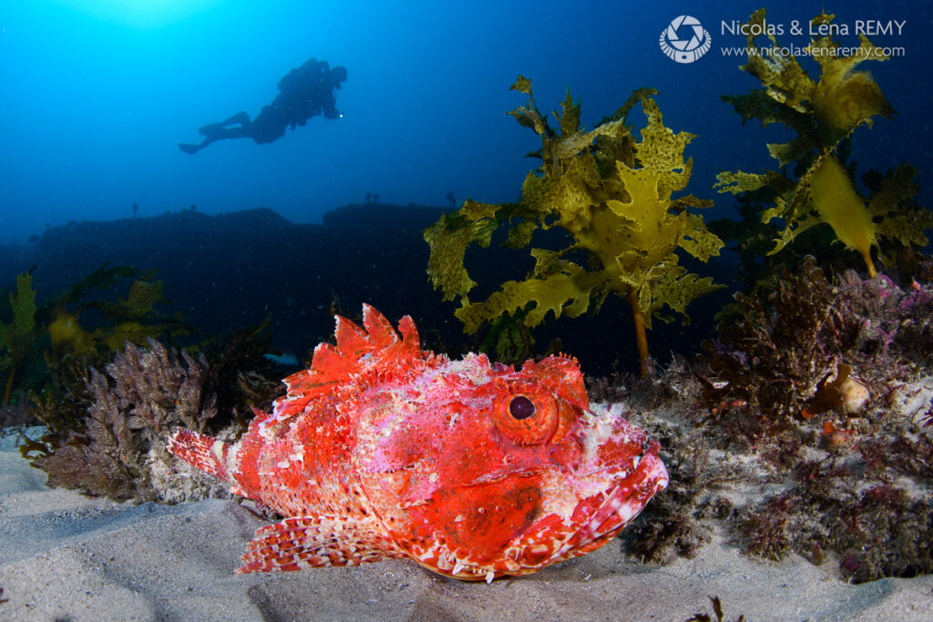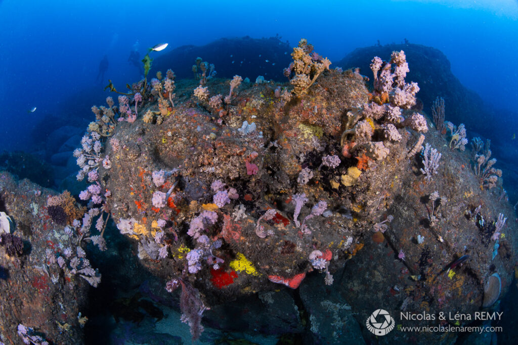 The afore-mentioned cliffs do more than providing scenic vistas, they also protect a range of dive sites from ocean swells. Aside from a handful of storms per year, this means there are always a few locations safe to dive. More than 30 dive sites are accessible from shore in good weather, twice as many from a boat, including several wrecks in the 40 to 50 meters (130-160ft) depth range. There are so many options, and I often struggle deciding on where to dive!
